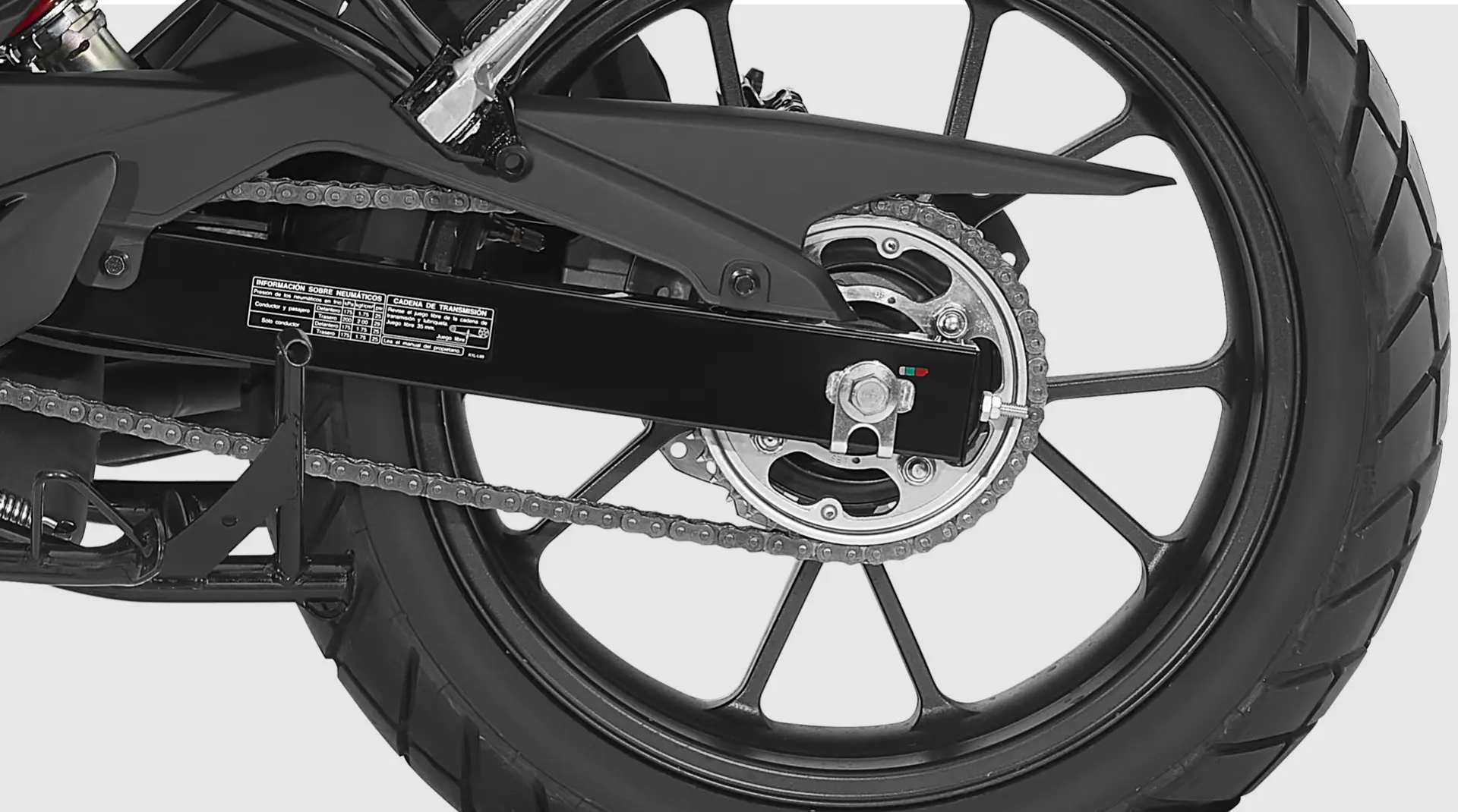 Equipada con suspensión Showa, la horquilla delantera invertida y el amortiguador trasero están calibrados para ofrecer una marcha confortable y estable en el uso urbano. Su puesta a punto permite absorber irregularidades del asfalto y mantener una pisada firme, brindando mayor confianza tanto en ciudad como en recorridos diarios más largos.