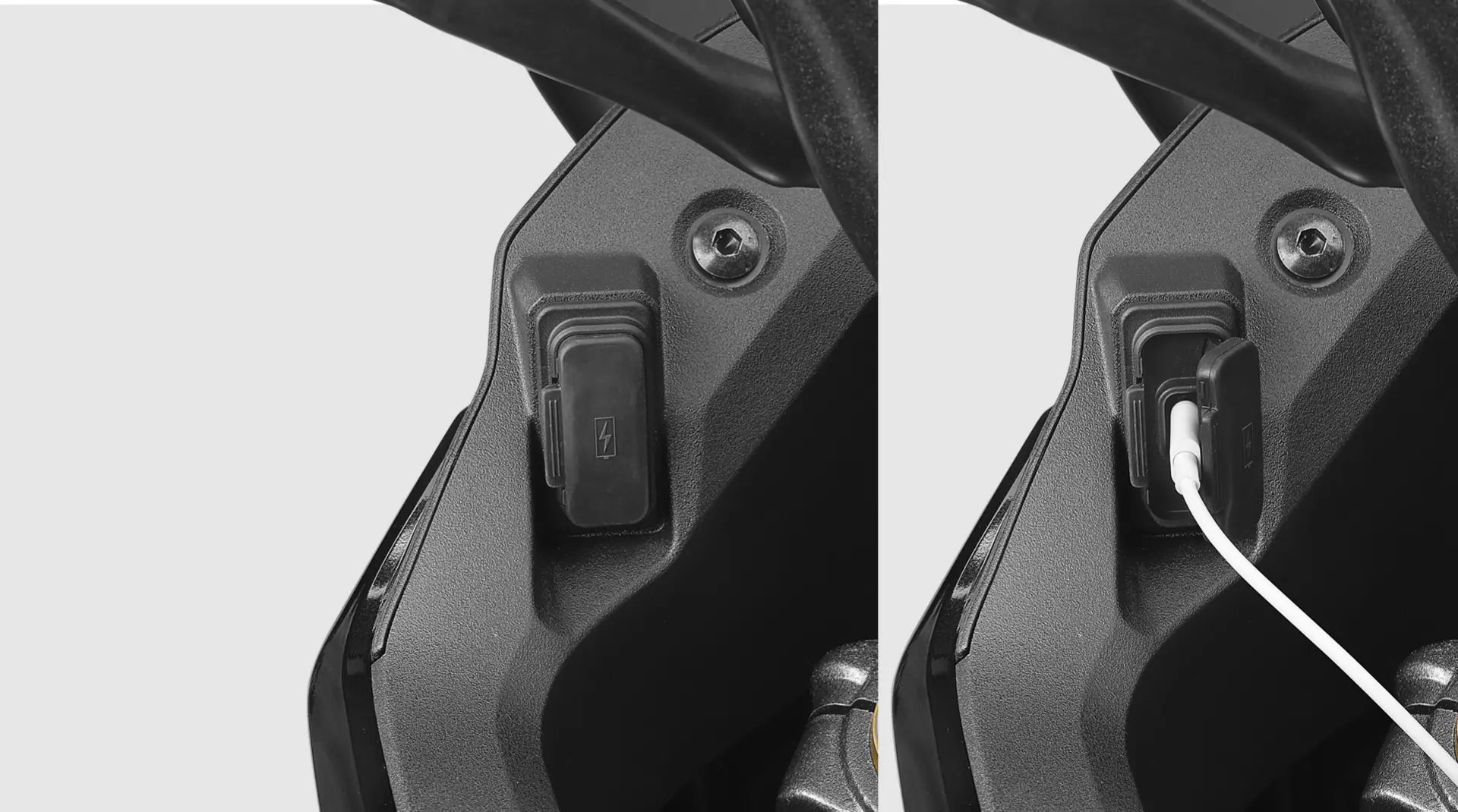 El puerto USB-C permite mantener dispositivos cargados durante el uso diario, sumando practicidad y conectividad para la movilidad urbana.