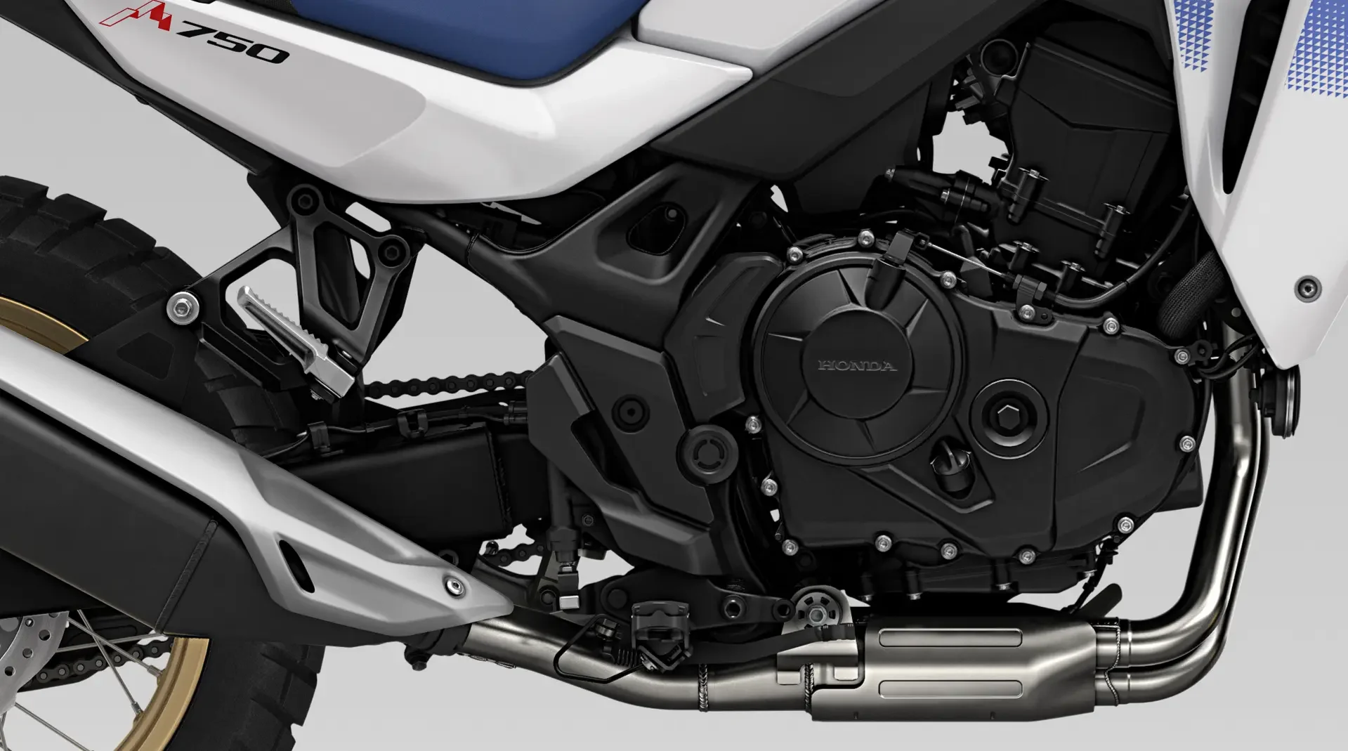 Motor bicilíndrico en línea de 755cc con culata Unicam, la misma tecnología de la CRF1100L África Twin. Compacto y liviano, entrega torque desde bajas vueltas para una respuesta ágil. La caja de 6 velocidades se complementa con embrague asistido y anti-rebote, facilitando cambios suaves y reduciendo el esfuerzo en conducción prolongada. Un conjunto pensado para adaptarse a distintos terrenos técnicos.