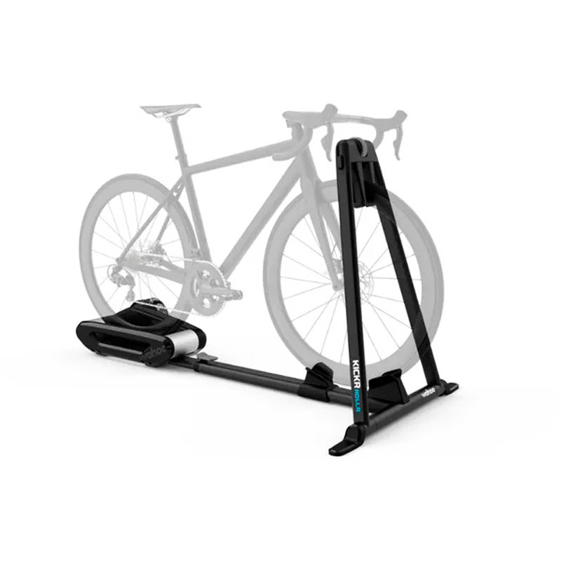 El rodillo KICKR ROLLR es compatible con los accesorios para rodillos KICKR, incluidos el ventilador inteligente KICKR HEADWIND y la mesa KICKR, lo que te permite crear la configuración ideal para tus necesidades de ciclismo indoor.